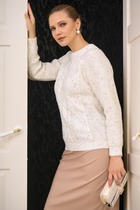 Модель Лера, ее рост 167 см, параметры: 85-61-88. На ней свитер единого размера 42-52.