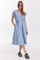 Ангора дарит ощущение невероятного комфорта. Благодаря вискозе синее платье легкое и приятное к телу. Полиэстер и спандекс в составе делают его устойчивым к частым стиркам.