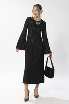 Модель Анфиса, ее рост 170 см, параметры 88-67-97 см. На ней размер 44.