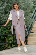 Бархатный жилет создан для женщины-кошки – той, что движется мягко, но уверенно, оставляя за собой след внимания и восхищения. Бархат мерцает при каждом шаге, подчёркивая изгибы и силу. Она не кричит о своей власти – она ею дышит. Этот образ манит, обещает и покоряет. Жилет асимметричного кроя с эффектом многослойности. Глубокий вырез и акцент на талии делают силуэт выразительным и утончённым.