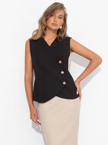 Жилет можно регулировать по объему талии с помощью тонких притачных завязок.