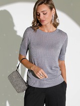 Vilatte Джемпер с коротким рукавом тонкой вязки из вискозы с люрексом D39.332 се