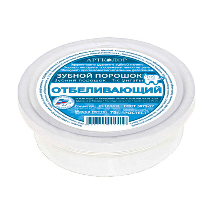 Убные порошки под маркой "АРТКОЛОР" - это эффективные средства для дополнительного ухода за полостью рта с высоким очищающим действием против зубного налёта и зубного камня. Эффективно удаляет зубной налёт; Хорошо очищает и освежает полость рта; Обладает укрепляющим действием. Прочная банка хорошо защищает содержимое от влаги и просыпания. Рекомендуется применять утром и вечером после еды.
