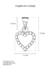 Подвеска Сердце из серебра с фианитами родированная