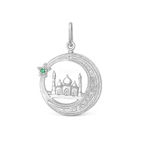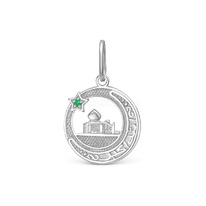 Подвеска мусульманская из серебра с зелёным фианитом родированная