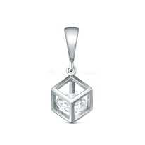 Подвеска куб из серебра с фианитом родированная