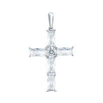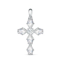 Подвеска крест из серебра с фианитами родированная