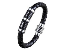 Браслет, кожа , сталь, ALB66