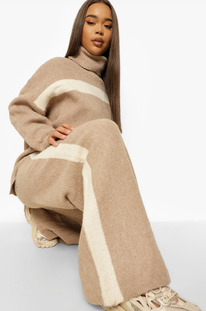boohoo Premium Heavy Knitted Stripe Set MOCHA