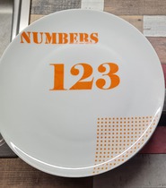 Большую тарелку диаметром 26 см украшает яркое изображение чисел 123.