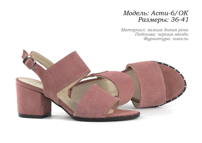 Босоножки из замши дикая роза, бежевая подкладка, каблук 6 см.