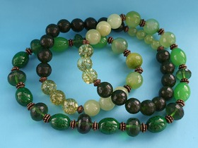 разноразмерные круглые бусины нескольких оттенков зеленого цвета