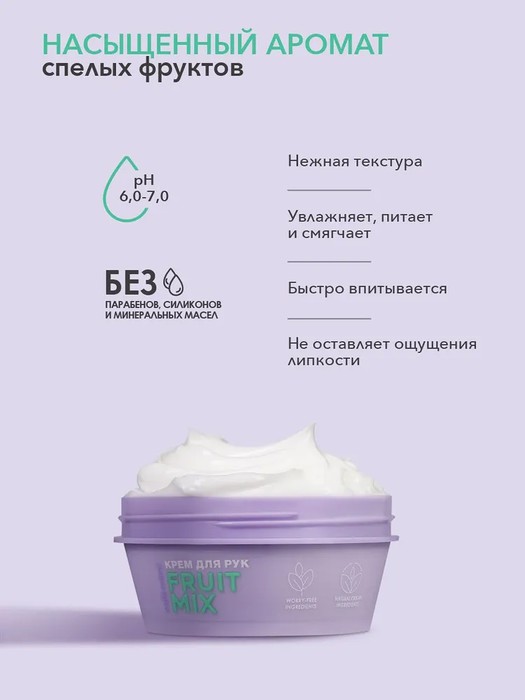 Крем для рук FRUIT MIX предотвращает сухость, увлажняет, питает и смягчает кожу.