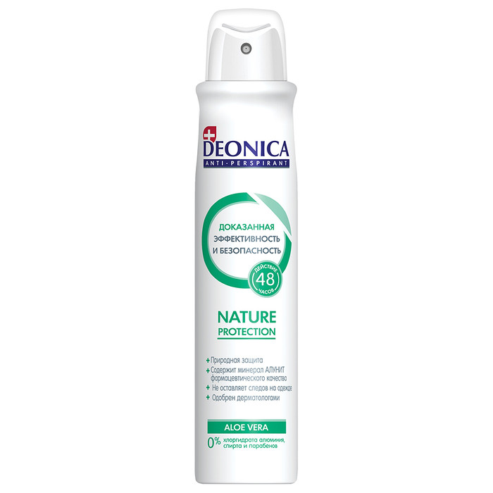 Deonica обладает уникальным составом, сочетая в себе инновации и европейское качество производства, обладая натуральным действующим веществом - алунитом и включая в себя инновационный комплекс активных компонентов. Формулы Deonica безопасны и эффективны, рецептура “Nature Protection” не содержит хлоргидрат алюминия, не содержит спирта и парабенов, обладает мягким действием и эффективной степенью защиты, при этом не блокирует поры и позволяют коже дышать.