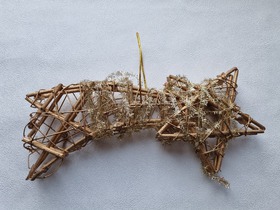 Новое ёлочное украшение падающая звезда, новогодний декор. Эта элегантная плетеная елочная игрушка - идеальный выбор для тех, кто хочет украсить свою елку в этом праздничном сезоне. Она выполнена из высококачественных натуральных материалов и имеет яркий золотой, привлекательный дизайн, который сделает вашу елку настоящим центром внимания. Эта игрушка легко крепится к веткам елки и будет служить долгие годы благодаря своей прочности и надежности. Она подойдет для любого стиля оформления и добавит уют и тепло в ваш дом во время праздников. Состав: дерево, металл, мишура. Размер: 33х15х4 см.