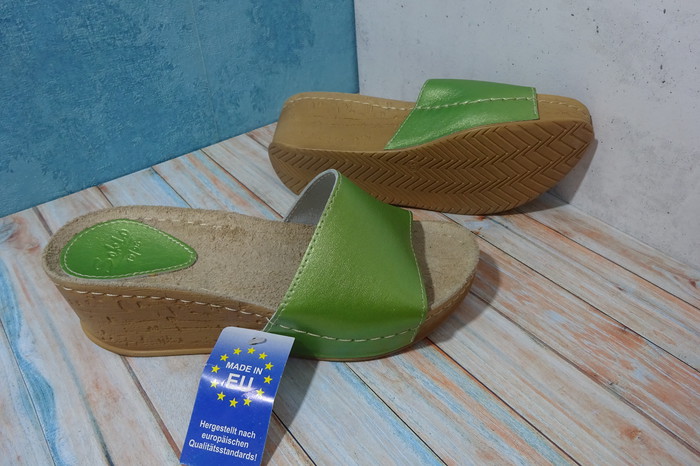 Новые, натуральная кожа. Высота танкетки 6 см, длина по стельке 23 см. Красивый зелёный металлик. Заказывала из Германии, corso