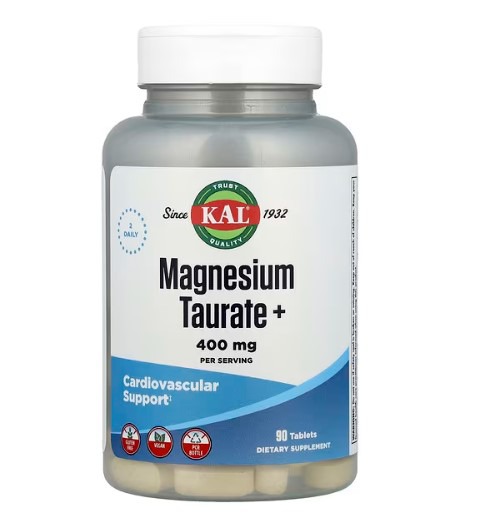Описание. Таурат магния KAL® сочетает в себе минерал магний с аминокислотой в свободной форме таурином. Таурат магния + обеспечивает питательную поддержку для здоровья костей, сердечно-сосудистой системы, мышц, расслабления, клеточной энергии, здоровых зубов и работы нервов. Пиридоксаль-5-фосфат (витамин B6) может обеспечивать питательную поддержку для здорового синтеза эритроцитов.