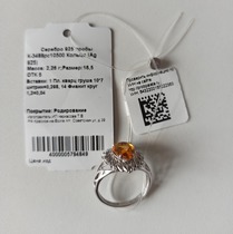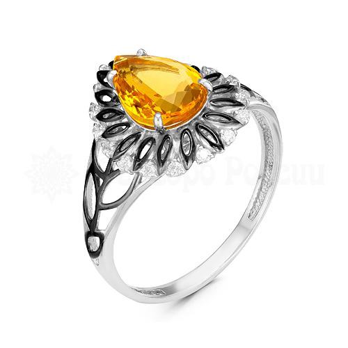 Новое серебряное кольцо с кварцем цитрин и фианитами.