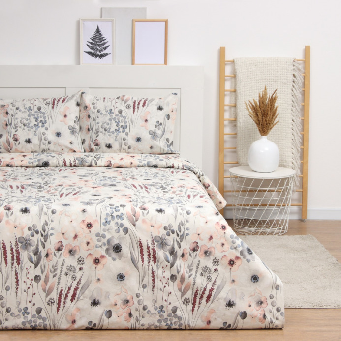 Комплект постельного белья из поплина Весенние Цветы серые