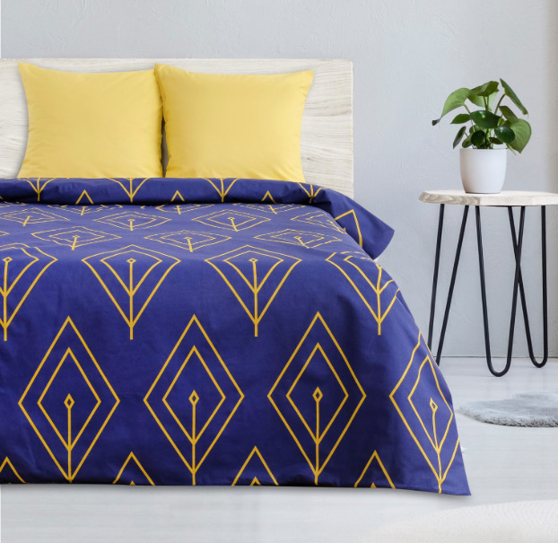 Заказать Комплект постельного белья из поплина Лепесток синий/жёлтый