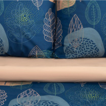 — Комплект постельного белья из поплина Листья сине-зелёный