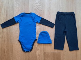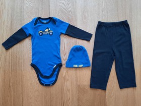 Б/У костюм известного, американского бренда Gerber, Baby-Boys Newborn 3 Piece Bodysuit Cap and Pant Set. В комплект входят боди, брюки и шапка. Вырез на плечах и низ на кнопках для удобной одевания. Комфортный эластичный пояс на брюках для удобного надевания и снятия. Бои и шапочка с аппликацией и вышивкой. Термо - этикетка, не царапает кожу малыша. Усиленное основание для кнопок. Цвет: Motorcycle Blue. Состав: 100% хлопок. Размер: 18 Months для мальчика 18 месяцев, ростом 76-83 см. Состояние: б/у, отличное.