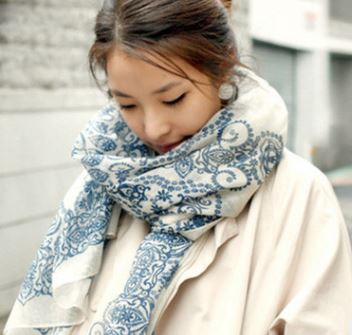 — Палантин из тонкой ткани 170*80 см.синий белый фарфор