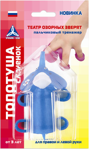 Наденьте тренажер на пальчики, как показано на фото в Подробнее.А теперь научите Слоненка двигаться.Игровые упражнения обеспечивают развитие мелкой моторики и координации рук: Слоненок может ходить, бегать, садиться на задние ноги, играть в футбол, поднимать хоботом различные предметы, вращать хоботом колечко.Топотуша Слоненок изготовлен из мягкого, гибкого материала, свободно надевается на 5 пальчиков любой руки ребенка.Уже через несколько недель игры с пальчиковым тренажером вы удивитесь тому, насколько сильными становятся руки ребенка, отметите высокую скорость его письма, выносливость и ловкость при выполнении сложных заданий с мелкими предметами.Топотуша Слоненок – игра 3 в 1: умный пальчиковый тренажер, настольная игра и игра в дорогу.Возраст: от 3 до 7 ле