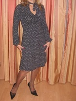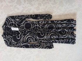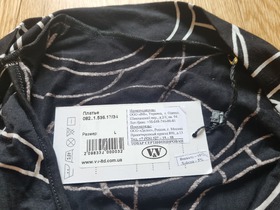 Новое платье известного украинского модного бренда V&V. Прекрасное платье модного кроя. Модель выполнена из материала приятной расцветки. Безупречный силуэт - залог успеха этого платья. Платье хорошо подойдет как для офисного так и для праздничного гардероба. Цвет: черно-белый. Состав: 95% вискоза, 5% лайкра. Размер: международный L, наш 48. Замеры: длина по спинке 103 см, длина рукава по внешнему шву 64 см, по внутреннему 49 см, ширина между плечевыми швами 39 см, ширина между подмышек 40 см, ширина талии 35 см, ширина подола 93 см.