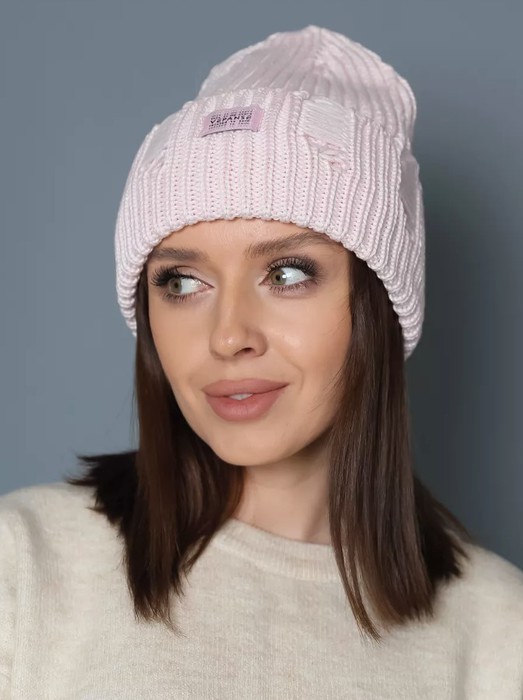 Шапка из итальянской мериносовой шерсти(не скатывается) цвет пудра