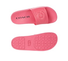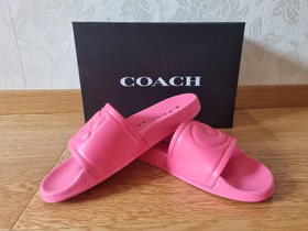 Новые оригинальные сланцы известного американского бренда COACH Ulla Rubber Slide. Эти непринужденные спортивные шлепанцы изготовлены из мягкой водонепроницаемой резины с тиснением логотипа. Контурная стелька обеспечивают комфорт в течение всего дня. А резиновая подошва обеспечивает долговечность скольжения. Цвет: Confetti Pink Rubber. Состав: 100% резина. Размер: 9 US, наш 39,5, длина по стельке 27 см, длина стопы 25,5. В коробке.